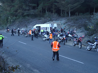 Riding on two wheels around those tight twisty corners with mountains of new rock makes for quite some interesting moments!! How to keep momentum and pace and not have the gear box drop out of the bottom of, quite an art indeed. Having reached the end of this delightful portion of road, time to take a brief stop and regather ones composure. Relief to be through it. Only just recently I have transferred from riding the small Yamaha XT250cc over to my new DAKAR SERTAO BMWG650 GS - affectionately known as "Gravel Hopper" and I adore this new bike. She handles extremely well over the loose stuff and cuts through it. The big 21inch front wheel almost feels like I am riding a dirt bike again.